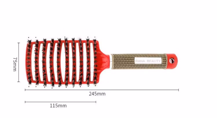 Denna kam är tillverkad av högkvalitativt material som är hållbart och bra för ditt hårs hälsa är. Dess kupolformade design är väldigt modern och passar ditt huvud bättre, det gör det lättare att räta ut håret. Det mjuka borsten och nylonkammarhuvudet med ihålig design kan förhindra att håret knyter fast och fastnar i kammen, lättare att rengöra.